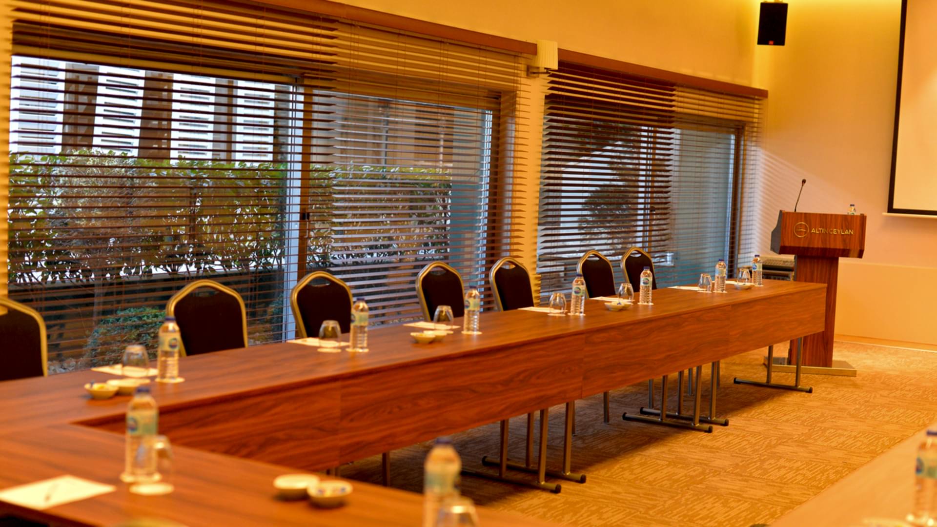 Toplantı salonlarımız barco perde, projeksiyon, ses düzeni, kablosuz internet bağlantısı gibi görsel-işitsel-teknolojik imkanları ve coffee break servisi ile toplantılarınızın yeni adresi haline gelecek. Altın Ceylan Club olarak başarının en ince detayların bile üzerinde durulmasıyla kazanılacağı bilinciyle yenilikçi, gelişimci ve kaliteli hizmetlerimizle verimli toplantılarınız için sizlerleyiz.